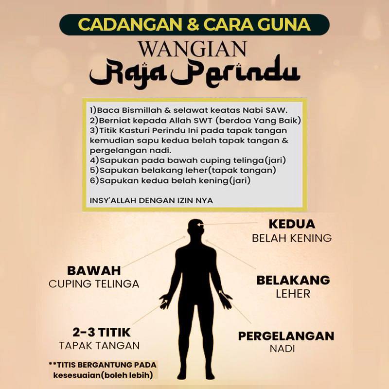 Wangian Raja Cenuai Perindu ini adalah wangian yang dapat membantu anda untuk serlahkan Aura Positif untuk menaikkan karisma diri, kasih sayang serta memudahkan perjalanan perniagaan dan kehidupan anda InsyaAllah.